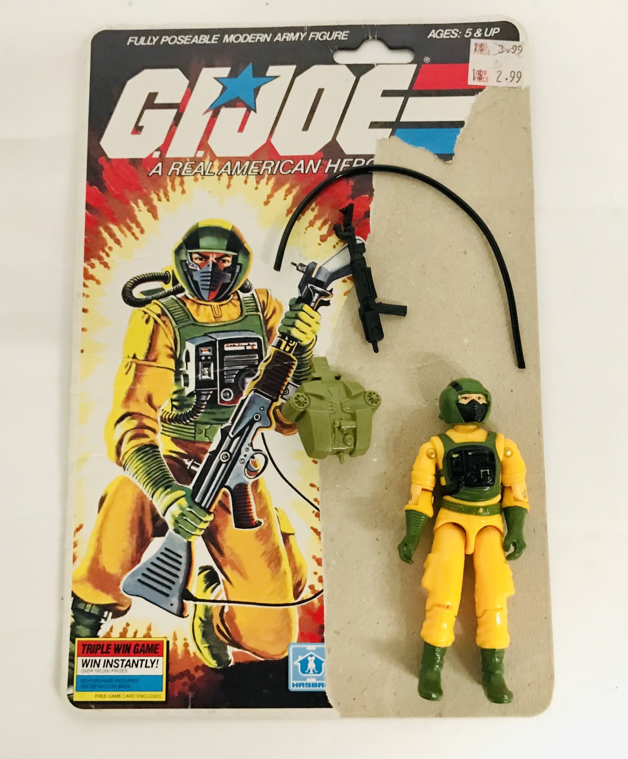 Figurine vintage Gi Joe ouverte avec sa Card US en version Hasbro